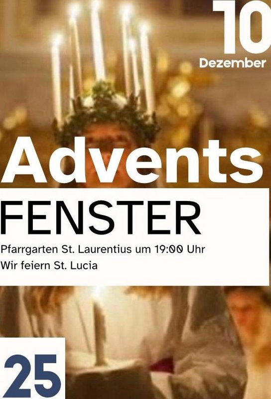 In der Adventszeit 2025 wird es wieder die liebgewordenen Adventsfenster geben. Diese Aktion wurde im Jahre 1996 von einer Katechetinnengruppe der Kommunionkinder der damaligen Pfarrei Herz Jesu ins Leben gerufen und mit großem Erfolg jährlich weitergeführt.