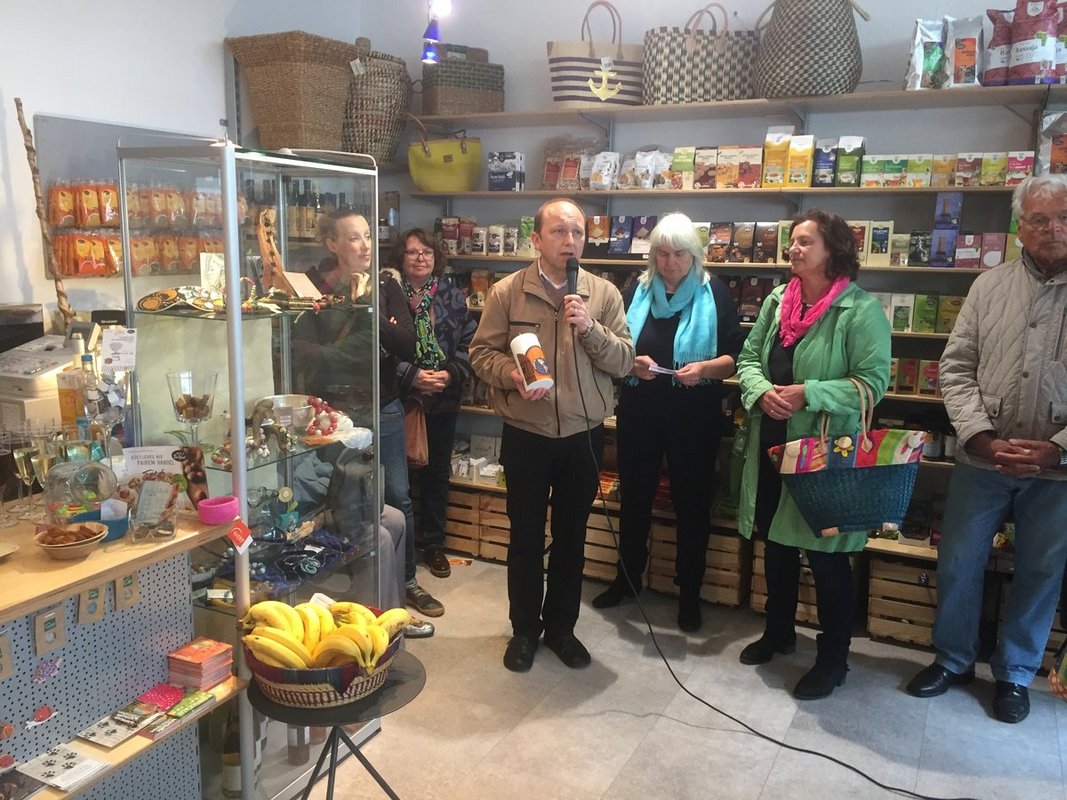 In ihrem Segen erbaten Pfarrerin Barbara Abel-Pohlack und Pastoralreferent Heinrich Schmith auch den Segen für alle, die in diesem Weltladen zusammentreffen und für die Menschen und Familien, von denen diese Produkte hergestellt werden, verbunden mit der "EINSICHT, dass die Christen Verantwortung tragen für die Menschen, der ABSICHT, die Arbeit in das Gebet zu nehmen und der AUSSICHT, dass Gott einem begegne, wenn man dem Geringsten Gutes tut."