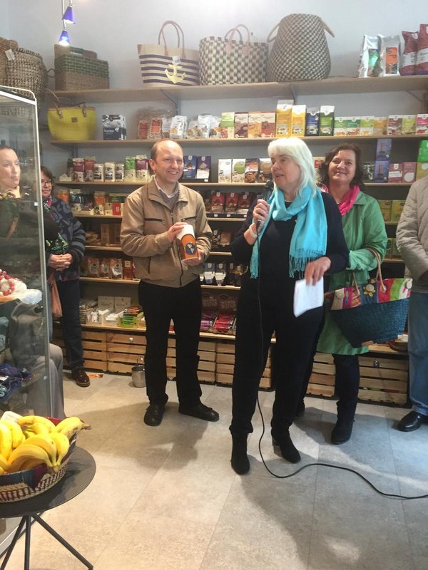 Doch auch das Wort Gottes fand Einzug in den neuen Weltladen, der an diesem Vormittag gesegnet wurde. So übermittelte zunächst Pfarrerin Barbara Abel-Pohlack die besten Glück- und Segenswünsche von der Evangelischen Kirchengemeinde. "Eigentlich segnen wir heute einen Sozialraum. Denn wenn wir fair gehandelte Produkte verkaufen und kaufen, dann sorgen wir für sozialen Frieden, für eine gerechte Welt, in der alle genug haben im Sinne des Evangeliums und dafür, dass Menschen von dem, was sie erarbeiten, leben können", meinte sie. Es sei eine Frage der Gerechtigkeit, dass Menschen den Lohn bekämen, der es ihnen ermögliche, ein würdiges Leben zu führen. "Das muss unser tiefstes Anliegen sein. Es ist auch ein Mittel, um die Ursachen von Flucht in den ärmeren Ländern zu verringern", führte sie weiter aus. Auch sie dankte allen Ehrenamtlichen für ihr Engagement, die damit zeigen würden, dass man über Zustände auf dieser Welt nicht nur reden sondern auch etwas tun könne. Der Faire Handel sei ein Weg, der aber noch nicht am Ziel angekommen sei. "Wir Menschen tun zwar, was für können, aber wir brauchen Gottes Hilfe dazu, damit er uns die nötige Weisheit gibt", fügte sie hinzu.