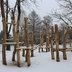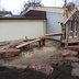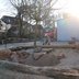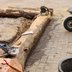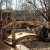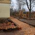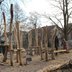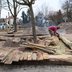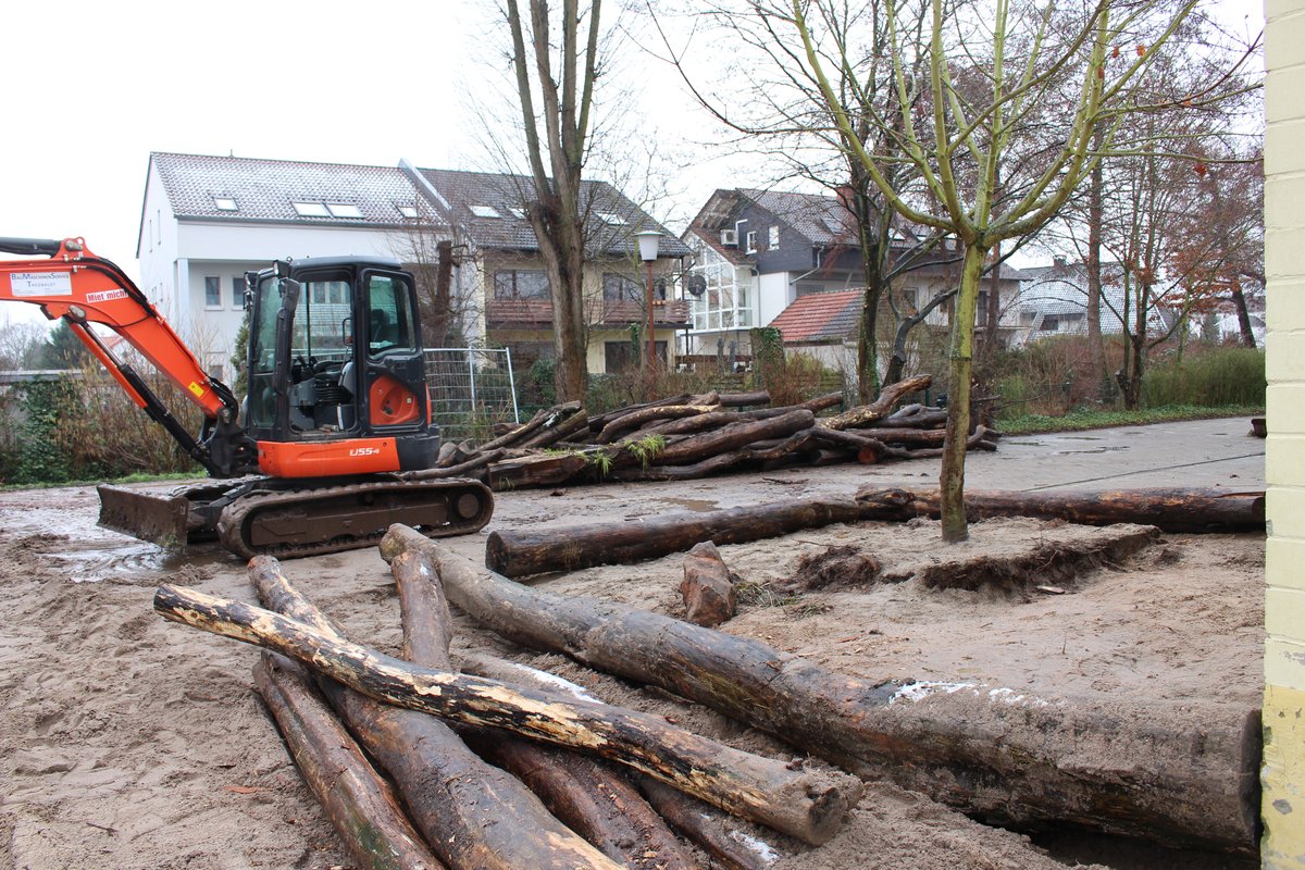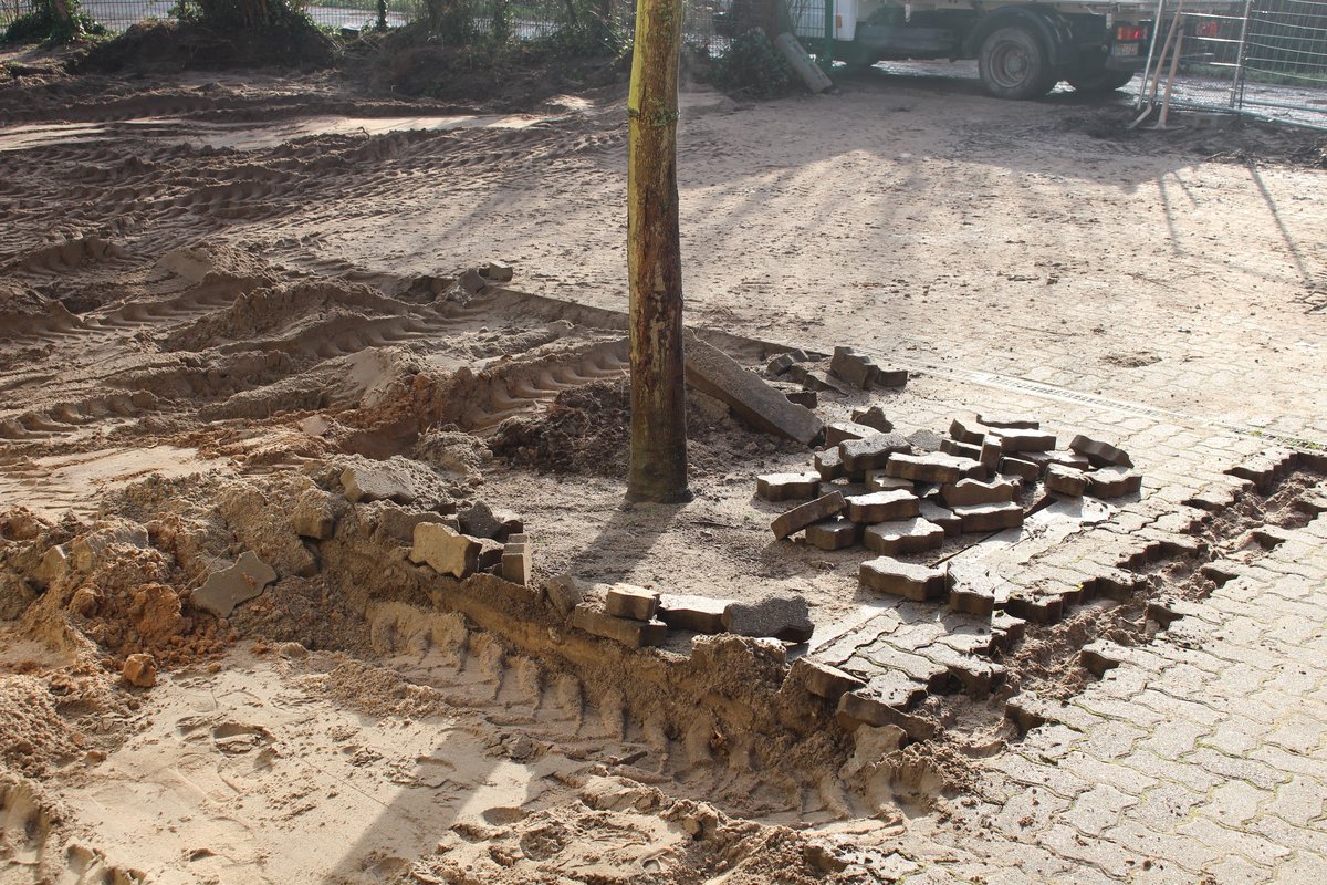 Die Pflastersteine wurden entfernt; die liegenden Hölzer platziert.