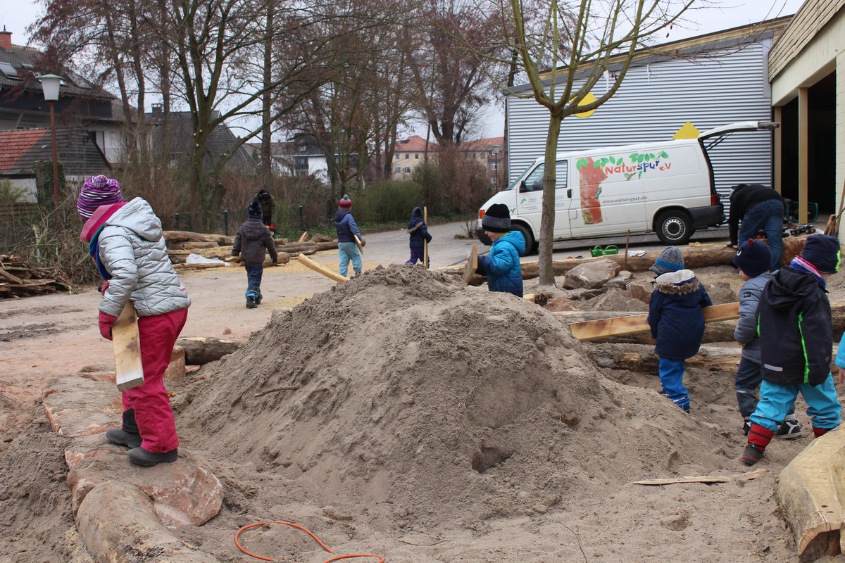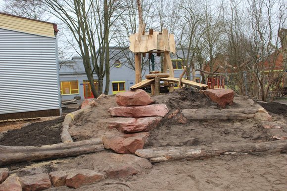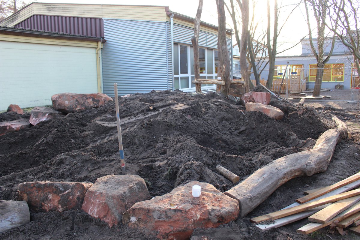 Im letzten Frühjahr haben wir bereits den 1. Bauabschnitt zur naturnahen Gestaltung unseres Außengeländes gemeinsam mit Kindern, Eltern, dem Kita-Team und dem Verein Naturspur realisieren können. Es ist ein tolles Abenteuergelände entstanden mit viel Platz zum Klettern, Toben, Rutschen, Schaukeln, Balancieren, Graben, …
