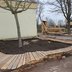 Die Pflastersteine wurden eingepasst und die ersten Bretter verschraubt.