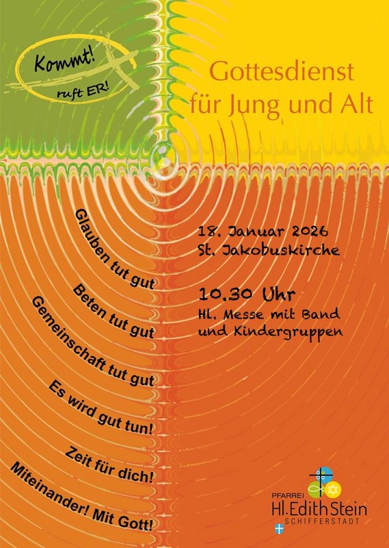 Am Sonntag, 18.01.2026 feiern wir um 10.30 Uhr in St. Jakobus (Kirchenstr. 14) unseren "Kommt! ruft Er!"-Gottesdienst.