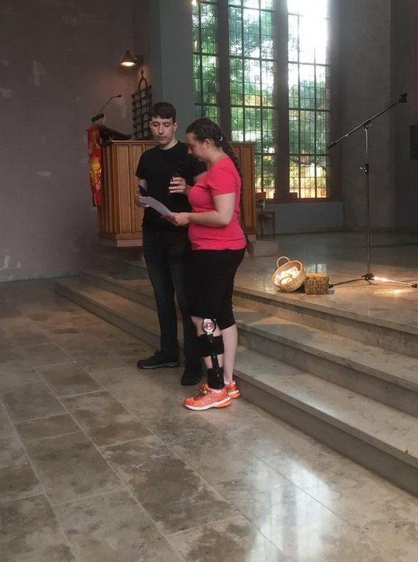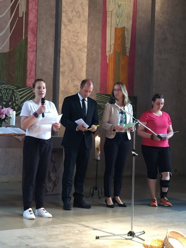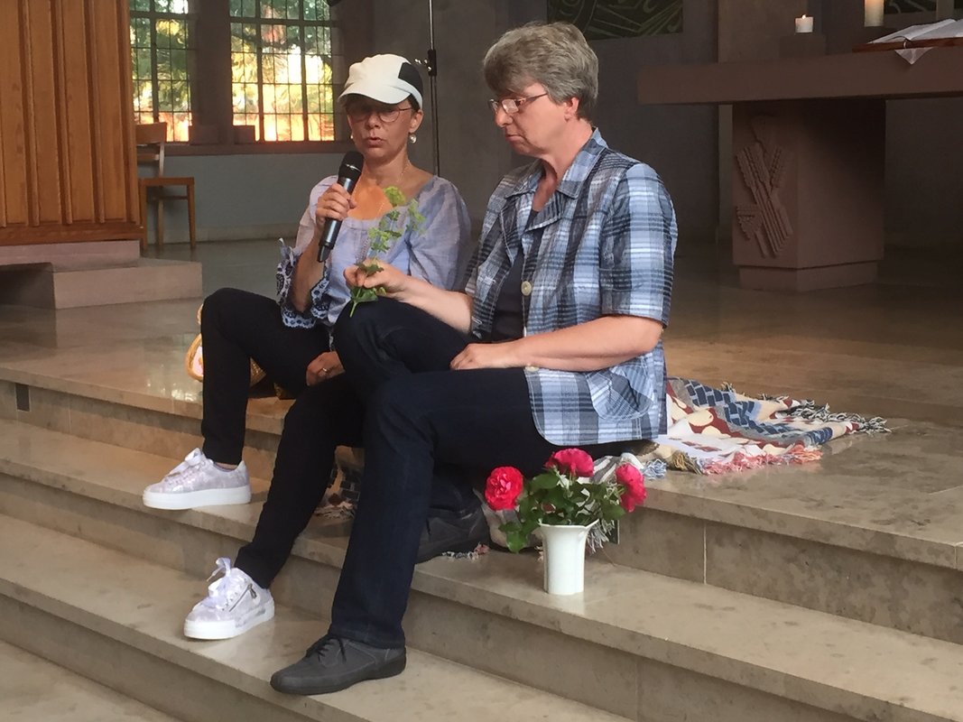 "Pfingsten – Beschenkt vom Heiligen Geist" war der ökumenische Gottesdienst für alle Generationen an Pfingstmontag überschrieben, der in diesem Jahr wetterbedingt in der Gustav-Adolf-Kirche gefeiert werden musste anstatt am Mittellacher Weiher (Dudenhofener Weiher).
