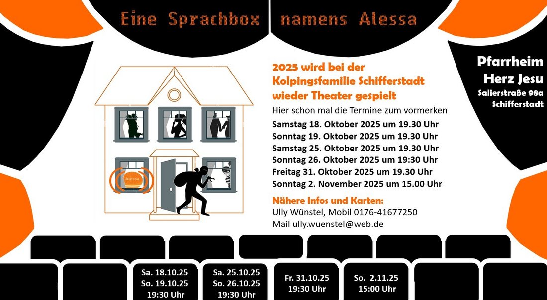 Denn bald ist es wieder so weit, dann heißt es im Pfarrheim Herz Jesu Vorhang auf für die Boulevardkomödie "Eine Sprachbox namens Alessa" in drei Akten von Beate Irmisch.