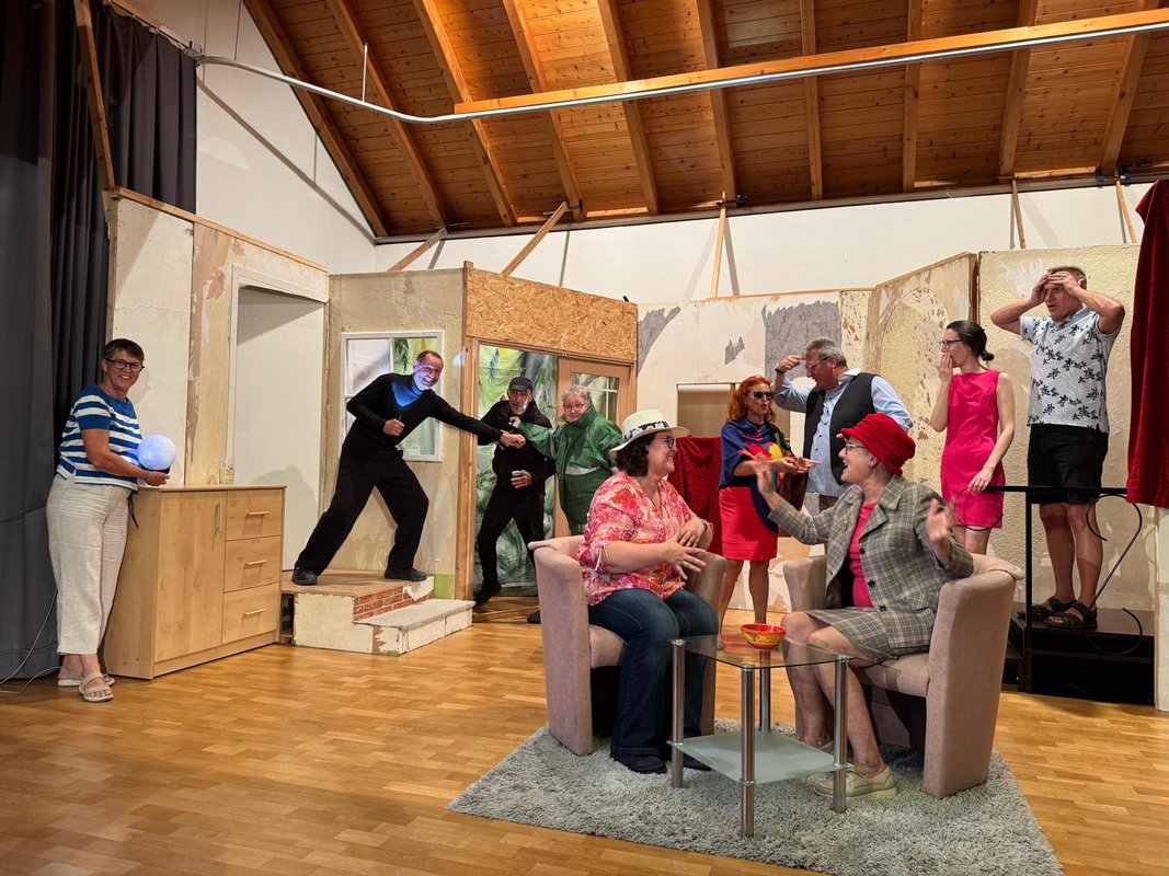 Seit Januar wird nun wieder für ein neues Theaterstück geprobt, beginnend mit Leseproben, gefolgt von Proben auf der Bühne, zunächst ohne Kulisse, nur mit Schildern, seit Juli mit Bühnenaufbau, Anfang Oktober folgte ein Probewochenende als Intensiv-Training für den Endspurt.