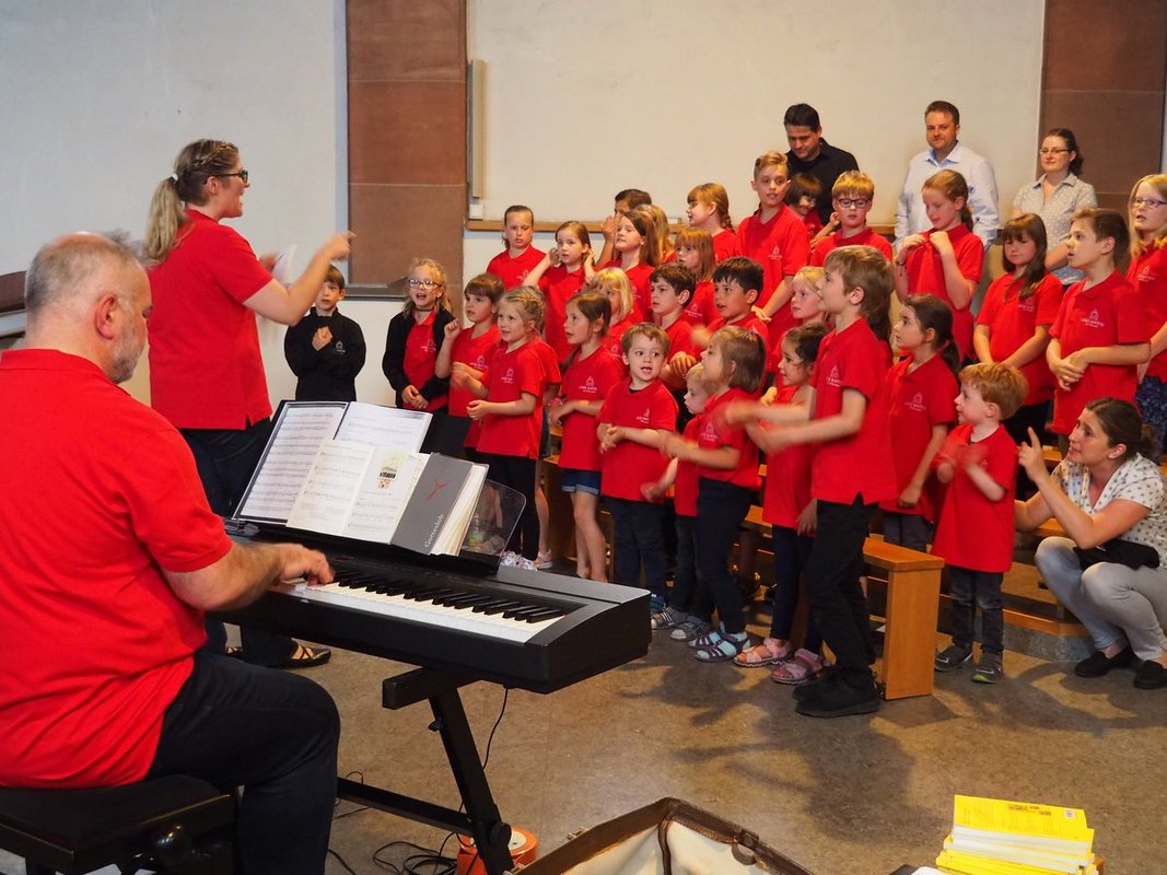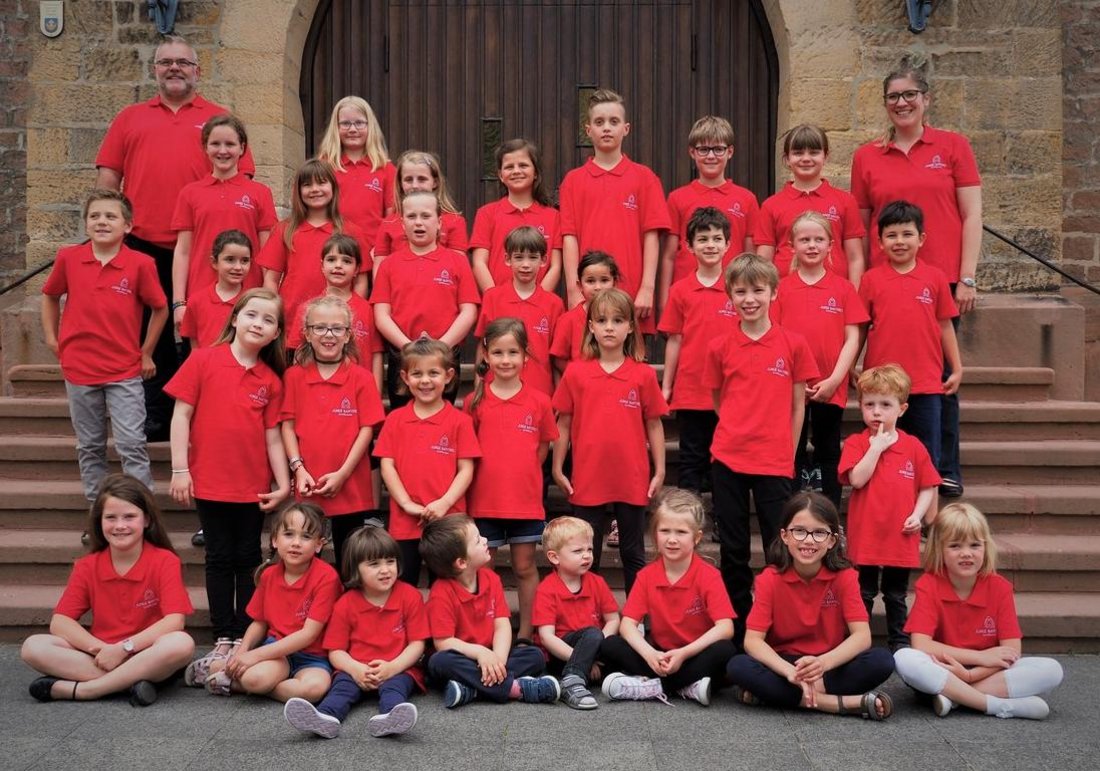 Und so präsentieren sich die einzelnen Gruppen der Jungen Kantorei seit Juni 2019 in neuem Gewand: Leuchtend rot und mit silbernem Logo (von einer Chor-Mama engagiert entworfen).