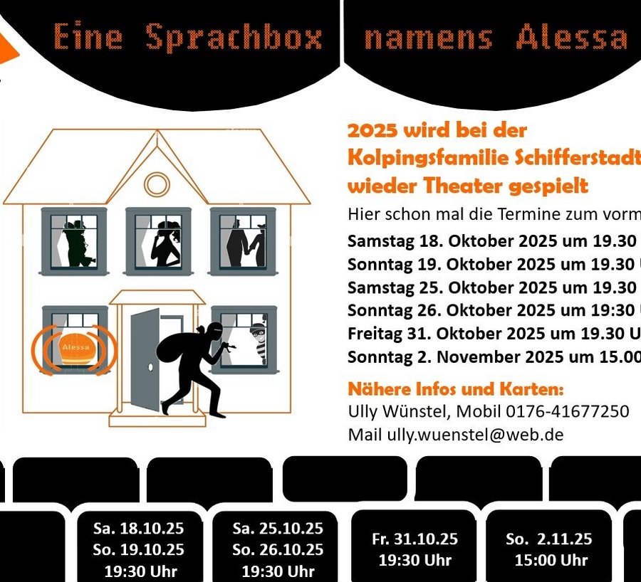 Denn bald ist es wieder so weit, dann heißt es im Pfarrheim Herz Jesu Vorhang auf für die Boulevardkomödie "Eine Sprachbox namens Alessa" in drei Akten von Beate Irmisch.