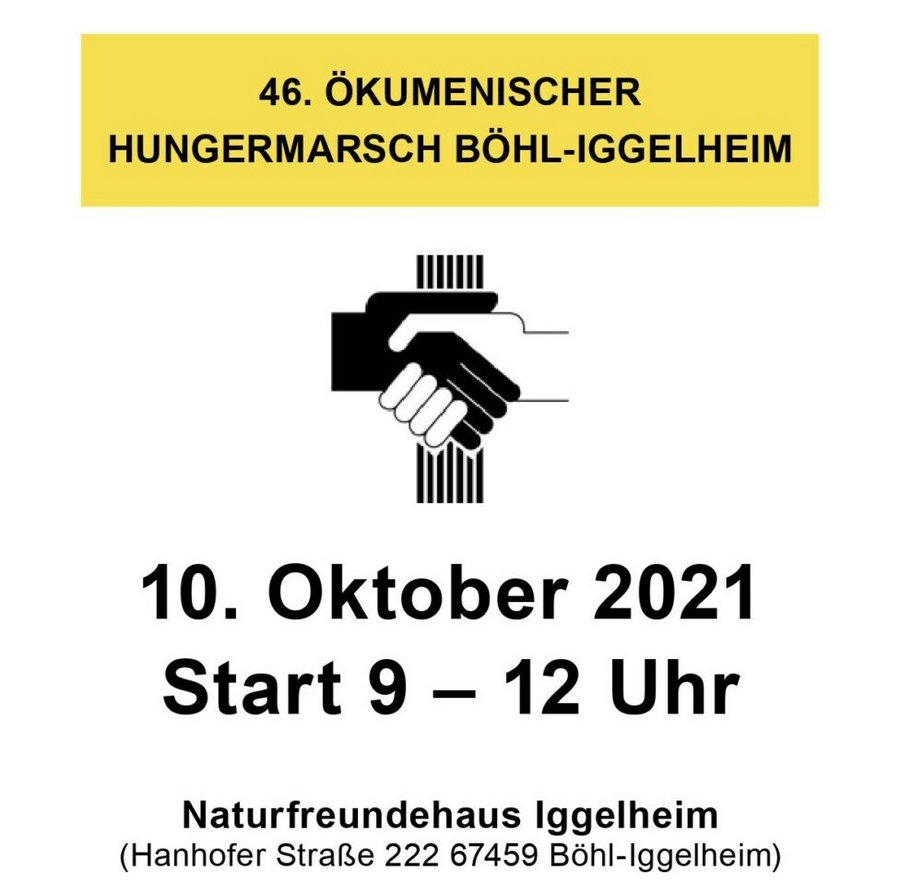 - Start und Ziel des Hungermarsches befinden sich in diesem Jahr am Naturfreundehaus Iggelheim (Hanhofer Straße 222, 67459 Böhl-Iggelheim).