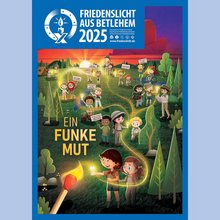 Die Aktion Friedenslicht steht 2025 unter dem Motto “Ein Funke Mut“. Die Pfadfinder*innenverbände, die die Aktion in Deutschland organisieren, schreiben dazu: "Ein Funke Mut - das kann der Anfang von etwas Großem sein. In einer Welt, die oft von Unsicherheit und Angst geprägt ist, brauchen wir Menschen, die mutig vorangehen. Ein Funke Mut bedeutet, für den Frieden einzustehen, auch wenn der Weg dorthin schwer ist. Es heißt, hinzuschauen und zu handeln - mit kleinen Gesten, die Großes bewirken können."