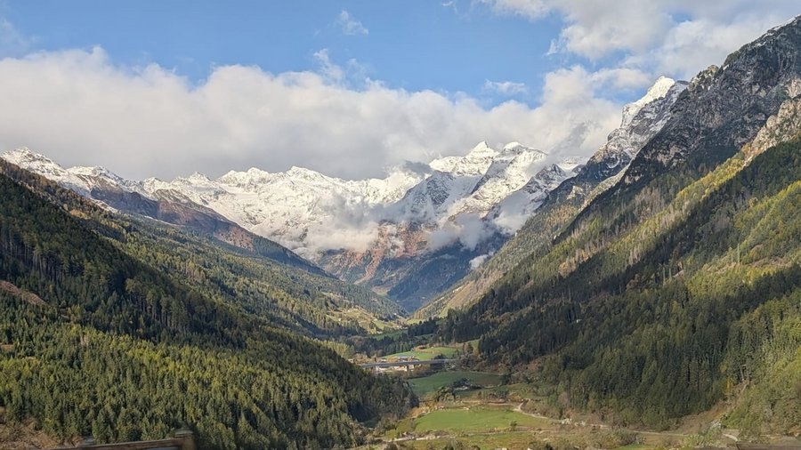 Alora (italienisch: also, nun) – das ist der letzte Tagesbericht von unserer Wallfahrt. Gestärkt durch die Nachtruhe in Trient und ein letztes gutes italienisches Frühstück machten wir uns am Morgen auf den Weg. Wiederum durchfuhren wir die schöne Gebirgslandschaft Südtirols, die bei wechselndem Wetter mal schöne, mal verhangene Aussichten bot. Weitgehend gab es Sonnenschein, aber auch heftige Regenschauer und auf dem Fernpass sogar etwas Schneefall. Somit war für Abwechslung gesorgt.