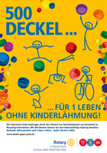 Der Verein „Deckel drauf e.V.“ wurde am 20.08.2014 gegründet und als gemeinnützig anerkannt. Das Ziel des Vereins besteht darin, durch das Sammeln und die Verwertung von Plastikdeckeln Projekte zu finanzieren. Mit dem Erlös der Deckel wird im ersten Schritt das Rotary Projekt „End Polio Now“ und damit die Bekämpfung der Krankheit Polio unterstützt.