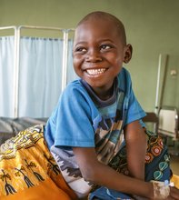 Benson aus dem Südsudan ist auf dem Aktionsplakat zu sehen. Nach einem Sturz vom Mangobaum wurde der Fünfjährige im Daniel Comboni-Krankenhaus in Wau behandelt, das von den Sternsingern unterstützt wird.
