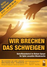 - Ebenso unterstützt die Interventionsstelle des Bistums (intervention@bistum-speyer.de, Telefon: 06232/102-196) oder der Betroffenenbeirat im Bistum Speyer (betroffenenbeirat-speyer@gmx.de, Telefon: 0151/144668058). Der Betroffenenbeirat ist montags bis freitags von 17 bis 19 Uhr erreichbar.