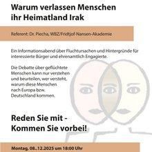 Thema dieses Abends: Warum verlassen Menschen ihr Heimatland Irak? sein.