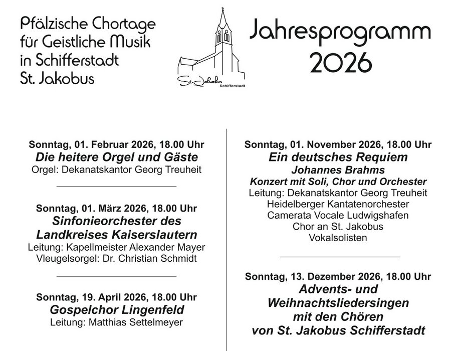 Pfälzische Chortage für Geistliche Musik in Schifferstadt St. Jakobus mit Jahresprogramm 2026