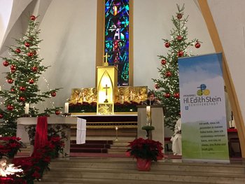 Mit der Errichtung unserer neuen Pfarrei Hl. Edith Stein beschloss der Pfarreirat auch, ein neues Logo entwerfen zu lassen. Das Logo sollte die bewegende Geschichte unserer Namenspatronin, der Hl. Edith Stein widerspiegeln und uns mit ihr und unserer Pfarrei identifizieren.