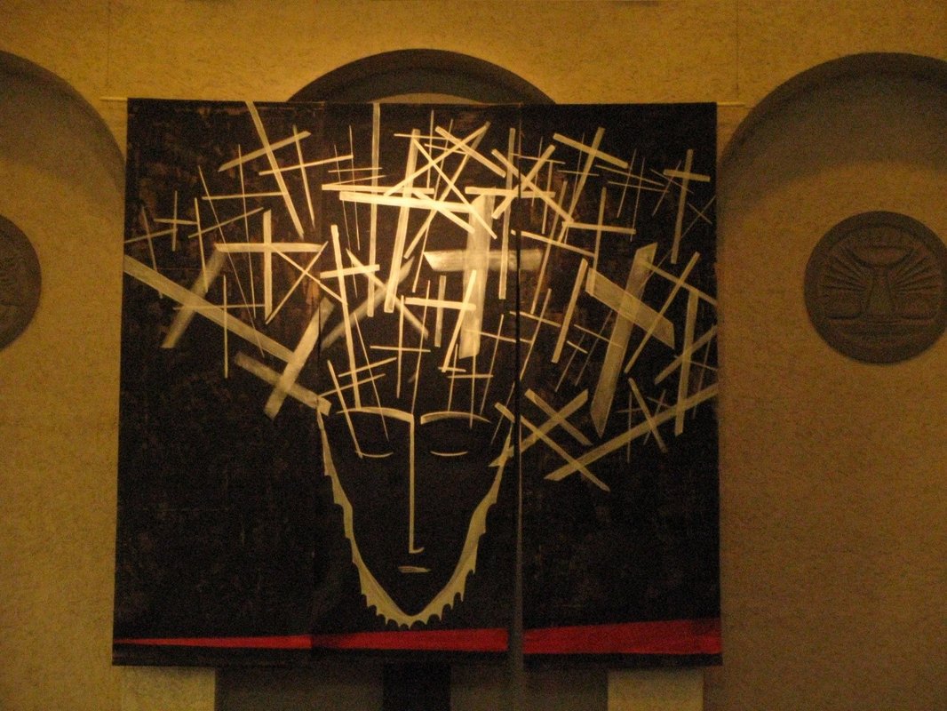 In der Kirche hing das Hungertuch, das wir dann auch im letzten Jahr am Karfreitag in St. Laurentius zum Thema hatten.