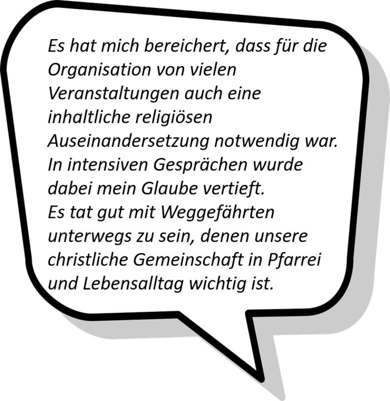 Mitglieder unserer Gremien Pfarreirat, Gemeindeausschüsse und Verwaltungsrat berichten,