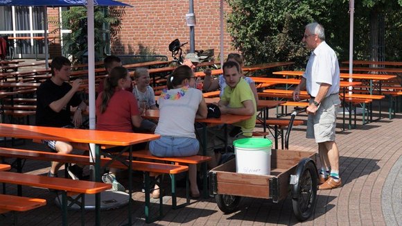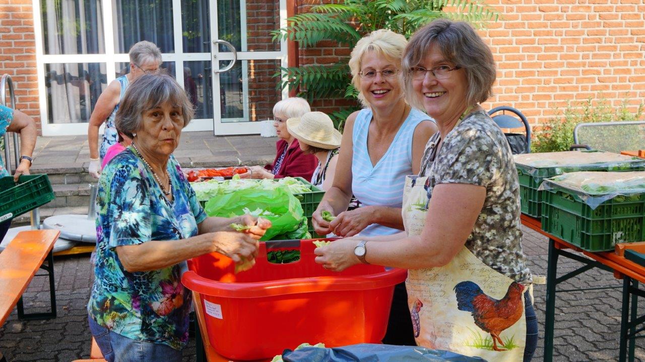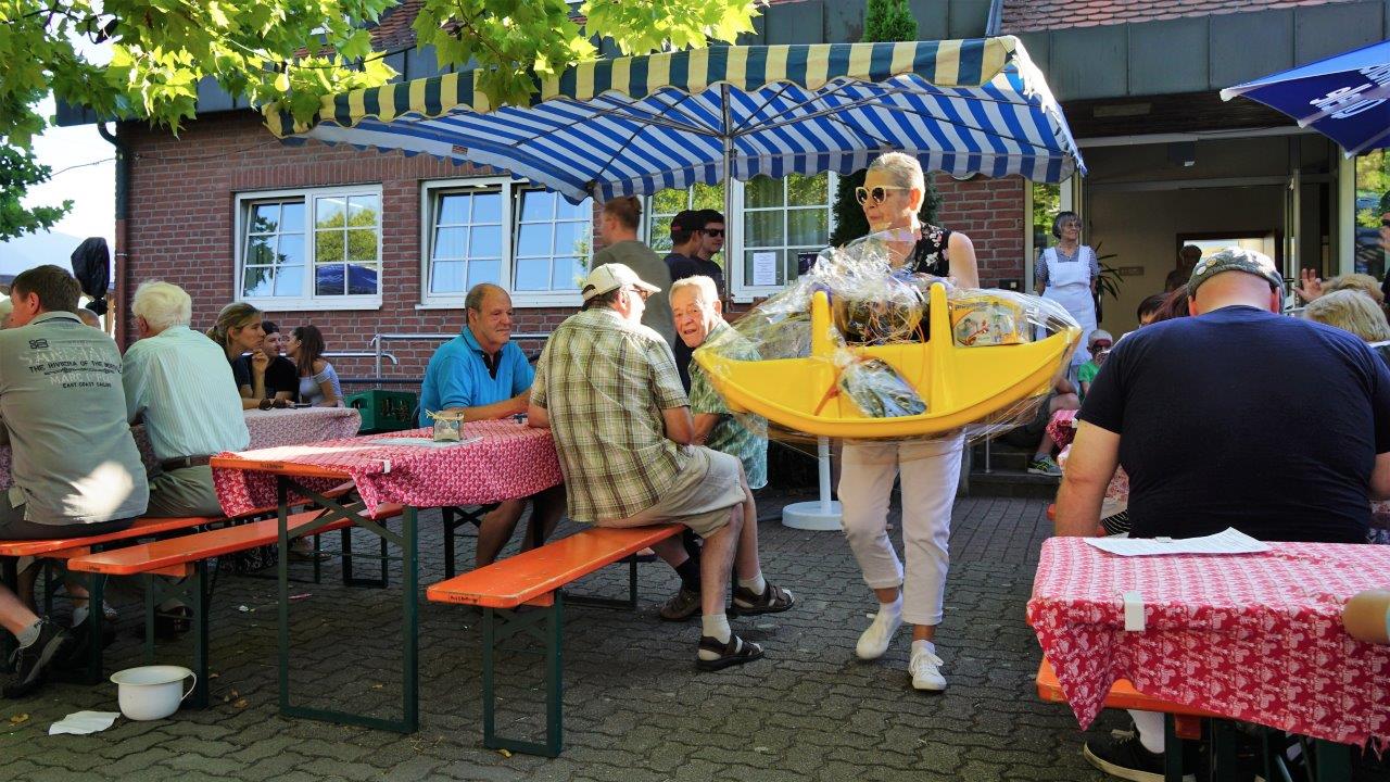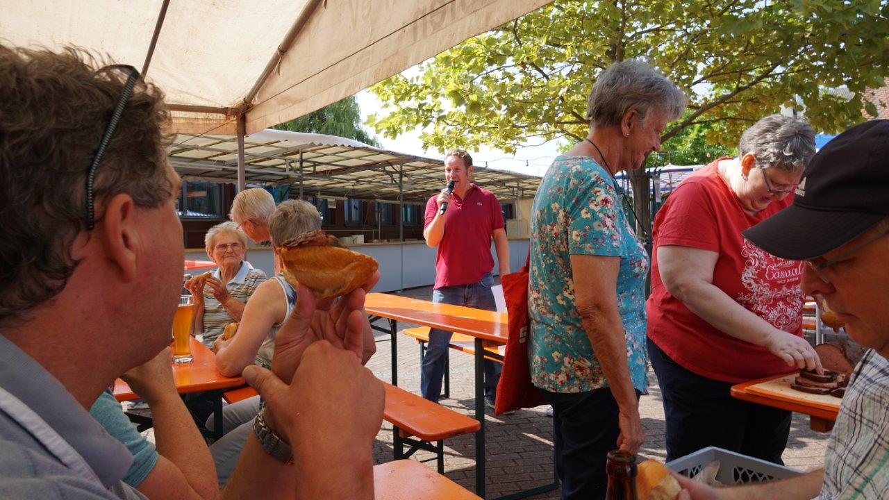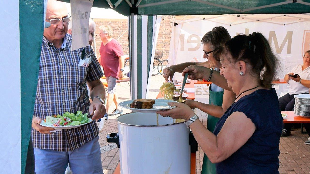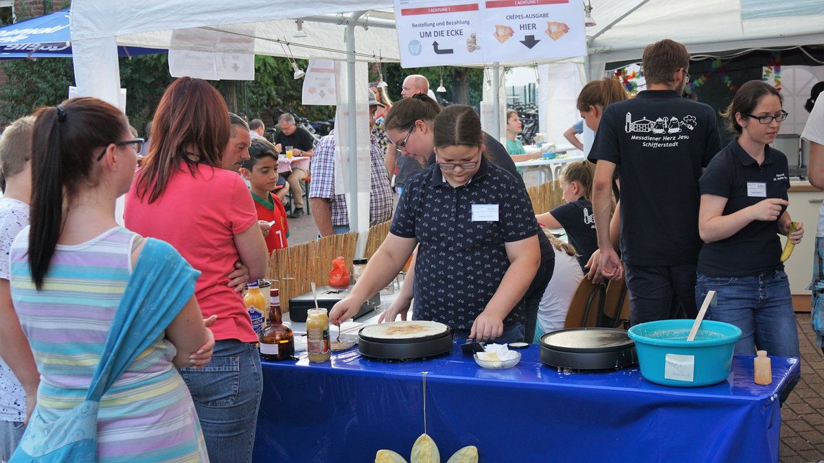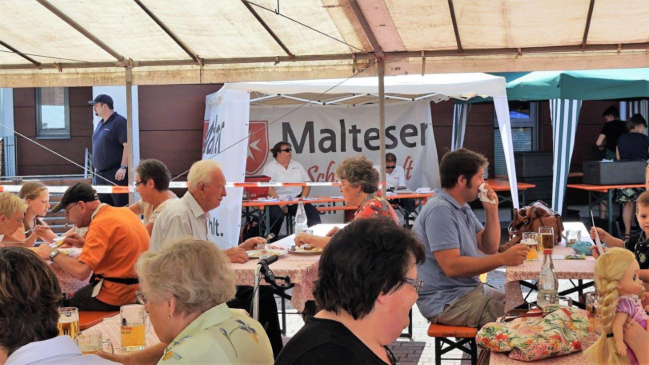 An beiden Tagen hatte der Gemeindeausschuss nach den Gottesdiensten in den Pfarrheimhof zum geselligen Beisammensein und Mittagessen eingeladen, was sehr gut angenommen wurde, da der Speiseplan viele kulinarische Köstlichkeiten zu bieten hatte. Und auch ein reichhaltig bestücktes Kuchenbuffet, angeboten vom AK "Frauen und Senioren", erfreute die Herzen der Freunde des süßen Naschwerks. Ergänzt wurde dies mit frischen Waffeln und Crepes, leckeren Cocktails bei den Messdienern, die auch einen "Kicker" bereithielten. Der Malteser Hilfsdienst war mit einem Info-Stand dabei und bot Blutdruck- und Blutzuckermessen an. Der Weltladen präsentierte schöne Waren aus der ganzen Welt an und der Freundeskreis Burkina Faso eine Auswahl ausgefallener handgefertigter Artikel.