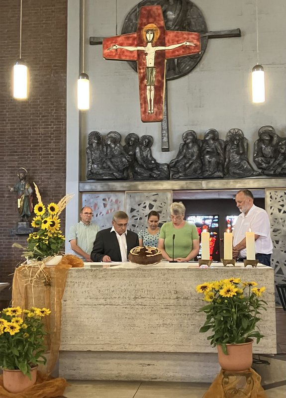 Seit einigen Jahren ist es zur guten Tradition geworden, dass am Ende des Gottesdienstes ein großer Brotleib gesegnet wird, der beim anschließenden gemütlichen Beisammensein miteinander geteilt wird. "Brot ist das Zeichen, das uns auch miteinander verbindet", hob Diakon Helmut Weick dabei hervor.