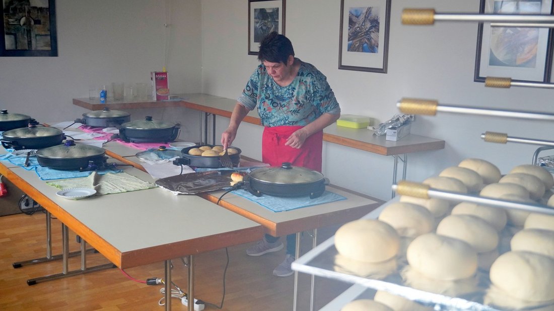 Einen großen Zuspruch hatte das Solidaritätsessen am Sonntag, 17. März 2024, zu dem der Gemeindeausschuss Herz Jesu in das Pfarrheim eingeladen hatte. Dabei zeigten über 100 Gäste um die Mittagszeit ihre Verbundenheit mit dieser Veranstaltung, darunter die Pfarrer Stefan Mühl, Albrecht Effler, Gerhard Grewer i.R. und Pastoralreferent Heinrich Schmith. Ziel des Solidaritätsessens ist es, über das Projekte zu informieren, das damit unterstützt wird. Große Anziehungskraft hat aber auch immer das angebotene Mittagessen. 220 hausgemachte frische Dampfnudeln, zubereitet von Ully Wünstel und Gabi Keßler, und leckere Kartoffelsuppe (auf Wunsch mit Wursteinlage), gekocht von Sigrid Teutsch und Ute Niederer, fanden dann auch problemlos ihre Abnehmer und waren anschließend restlos verspeist.