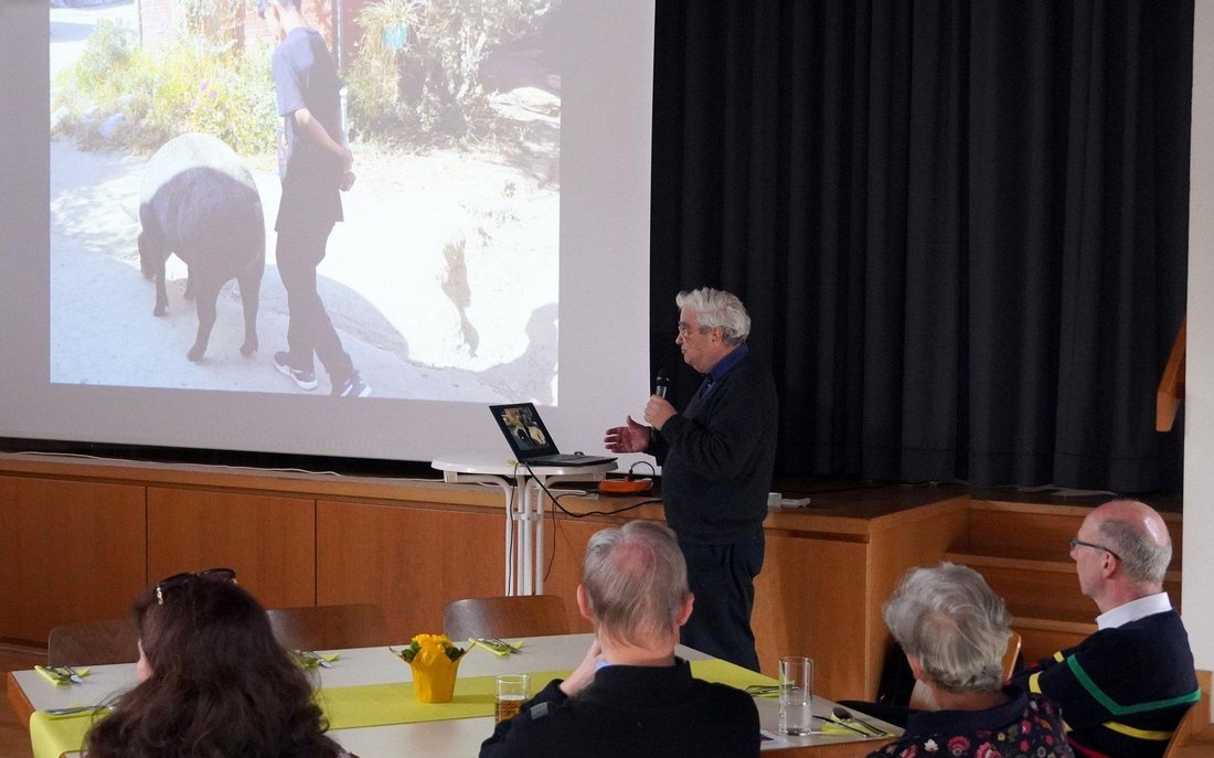 Eine Bilderpräsentation durch Rüdiger Loos, Geschäftsführer des Vereins "Juntos e.V.", gab Einblicke in die Arbeit und über die aktuelle Situation. Dessen Tochter Beatrix hatte seit frühester Jugend ein Faible für Südamerika, verbrachte auch einige Zeit in Ecuador. Während eines Praktikums in einem chilenischen Kinderheim lernte sie die Not und Verwahrlosung von Kindern in den Slums der Großstadt Santiago de Chile kennen. Sie entwickelte die Idee eines "Hogar Campo", ein Heim auf dem Land mit angeschlossenem Bauernhof. 1988 gründete sie mit viel Enthusiasmus dieses Kinderheim, deren Leiterin sie bis heute ist, um Kindern aus den ärmsten Familien Schutz, Geborgenheit, Ausbildung und Hoffnung auf eine lebenswerte Zukunft zu geben. Heute leben bis zu 24 Kinder im Alter zwischen fünf und 18 Jahren aus meist zerrütteten Familien im Heim. Im Laufe der Jahre wurde ein Kindergarten und eine Grund- und Hauptschule dazu gebaut, die von insgesamt 45 Kindern in Anspruch genommen werden.