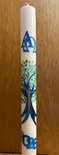 Osterkerze der Gemeinde St. Jakobus: "Kein totes Holz, an dem ein leidender Christus hängt" - Der Baum mit seinen vielen Blättern zeigt die Gemeinschaft der vielen Einzelnen, die zusammen zu etwas Großem und Komplexen werden.