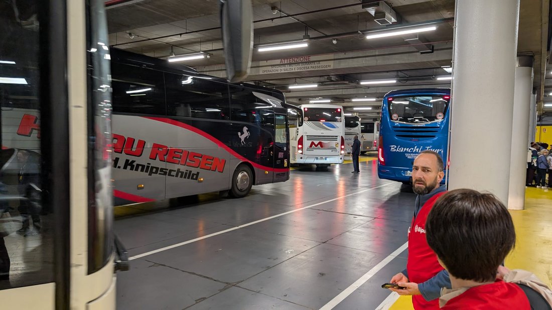 Nach einer für die meisten geruhsamen Nacht konnten wir uns am – für italienische Verhältnisse überaus üppigen – Frühstücksbuffet stärken. Dann hieß es wieder "Einsteigen".