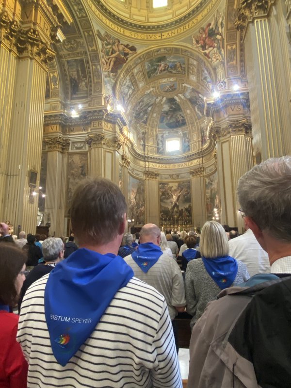 Den Abschlussgottesdienst mit der ganzen Bistumsgruppe feierten wir in der Kirche Sant’Andrea de la Valle, der Kirche mit der drittgrößten Kuppel Roms (nach dem Pantheon und dem Petersdom).