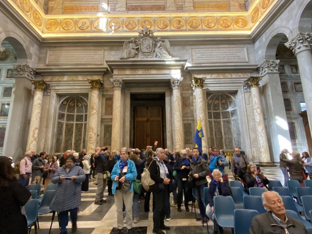 Der heutige Tag war prall gefüllt. Er begann nach der ersten Nacht in unserem Hotel mit einem wiederum reichhaltigen Frühstück. Dann brachen wir auf zur Basilika San Giovanni im Lateran, der eigentlichen Bischofskirche des Papstes und "Mutter und Haupt aller Kirchen". Dort trafen wir uns mit allen Pilgerinnen und Pilger aus dem Bistum Speyer.
