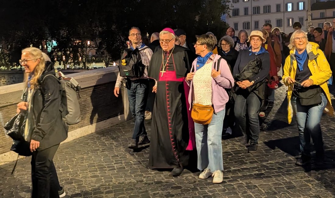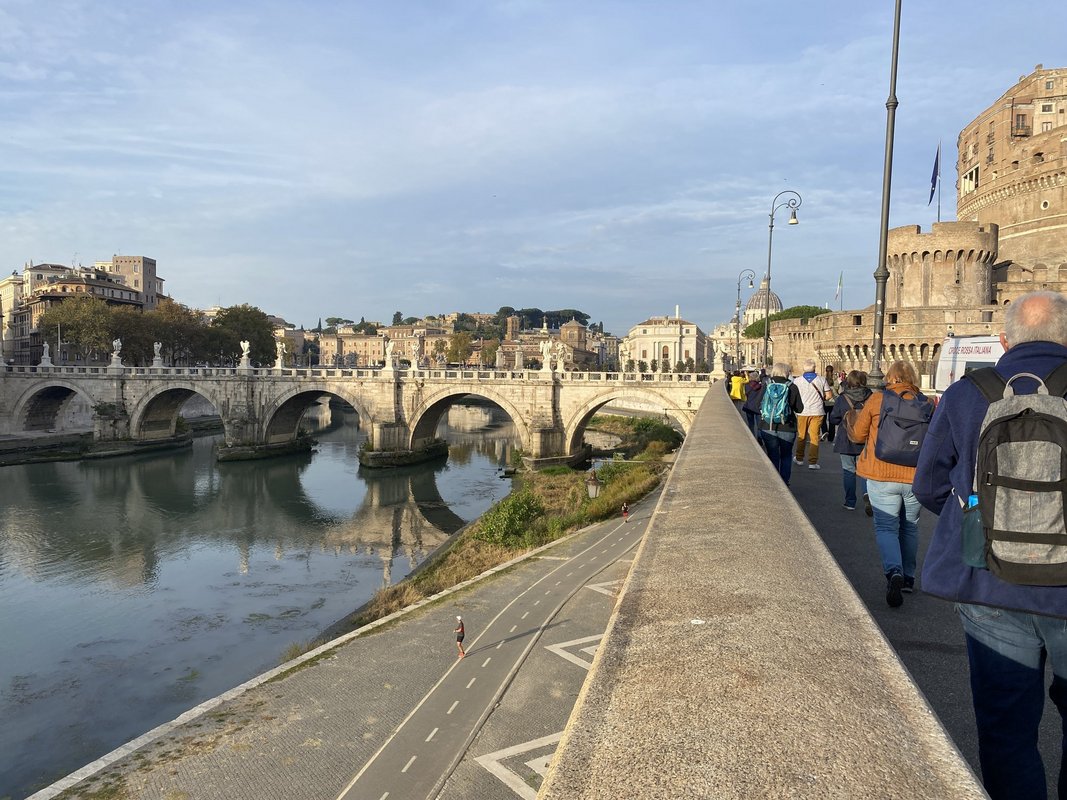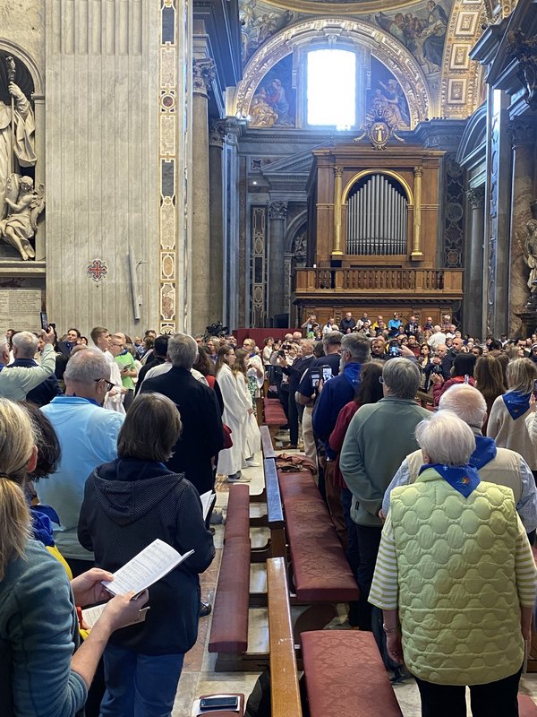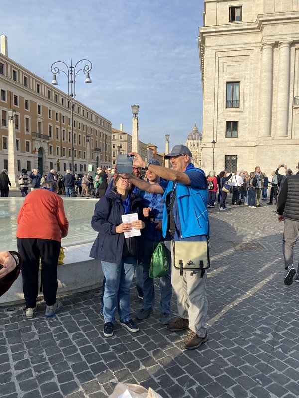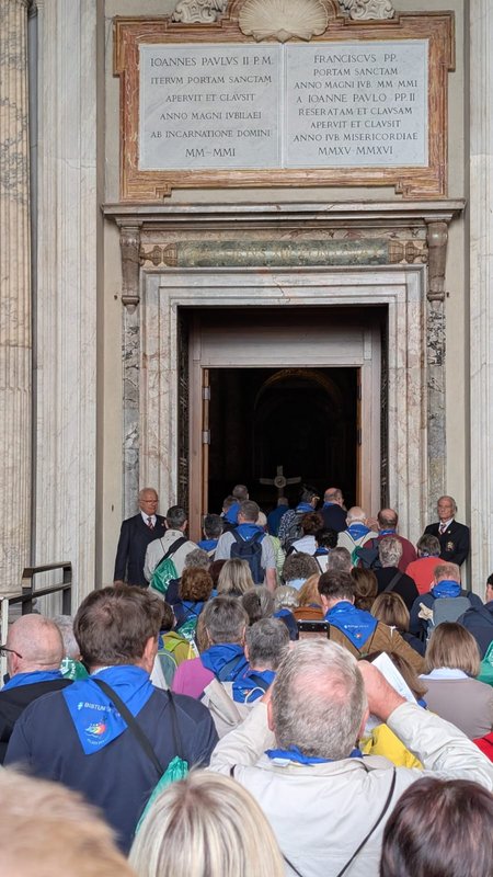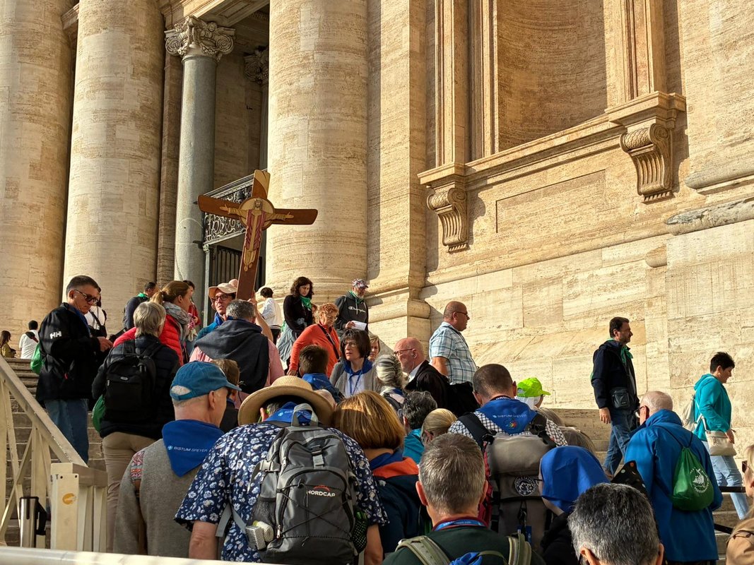 Wieder ist ein Tag unserer Wallfahrt vorbei, und schon haben wir Halbzeit. Heute ging es ins Zentrum der Weltkirche, in den Vatikan. Gemeinsam mit den anderen Speyerer Wallfahrerinnen und Wallfahrern versammelten wir uns am Morgen unterhalb der Engelsburg, um einen Pilgerweg über die Via della Conziliazone zum Petersdom zu gehen. Auf diesem Weg gab es Psalmverse und Gedanken zum Motto "Pilger der Hoffnung". Mehrmals sangen wir "Meine Hoffnung und meine Freude". Wir zogen durch die Hl. Pforte, die Papst Franziskus an Weihnachten 2024 geöffnet hatte, durch den Dom zur Confessio über dem Petrusgrab, wo wir unseren Glauben bekannten. Auch dieser Weg war wieder eine besondere Erfahrung im Heiligen Jahr!