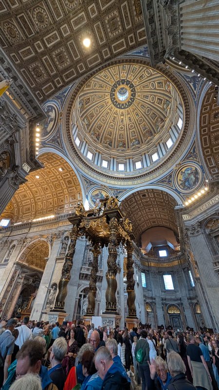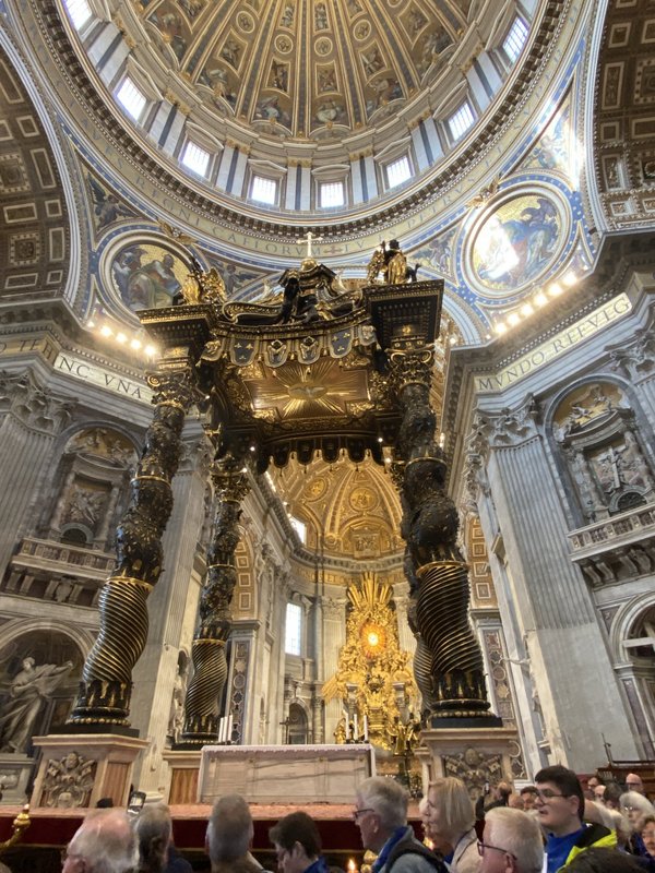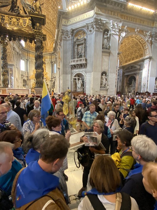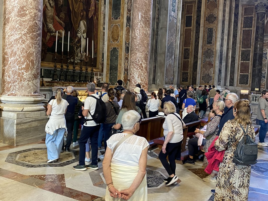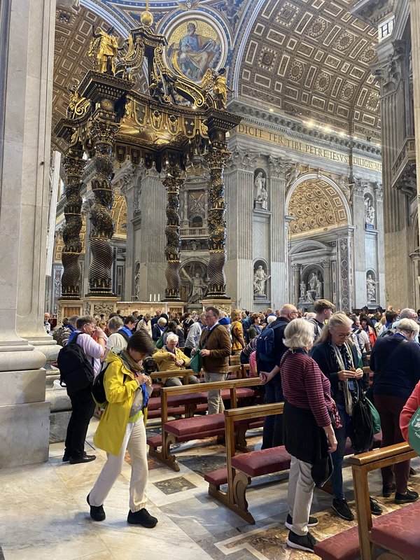 Nach dem Gottesdienst gab es eine Führung durch den Petersdom, bei dem einige der Kunstwerke erschlossen wurden, aber auch die beeindruckende Größe der Kirche erfahrbar wurde. Leider reichte für die meisten Teilnehmerinnen und Teilnehmer die Zeit nicht, um die Kuppel und die Krypta mit den Papstgräbern zu besuchen.