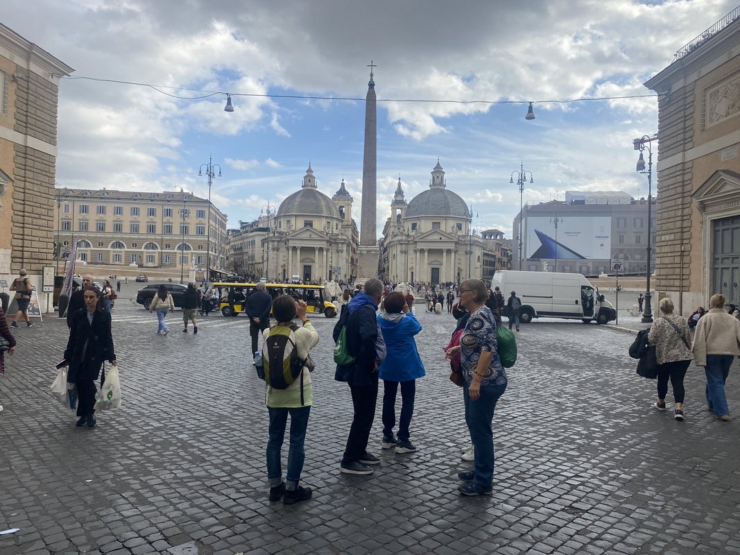Ein anderer Teil unserer Gruppe machte sich per Metro und pedes auf den Weg zur Piazza del Popolo, einem typischen römischen Platz mit den markanten Zwillingskirchen. Nach einer Zeit dort ging es weiter zur Basilika San Lorenzo fuori le Mura (St. Laurentius vor den Mauern). Sie gehört zu den sieben Hauptkirchen Roms, die bei der Siebenkirchenwallfahrt besucht werden. In ihr liegt das Grab des heiligen Diakons und Märtyrers Laurentius, der ja der Patron einer der Schifferstadter Gemeinden ist.
