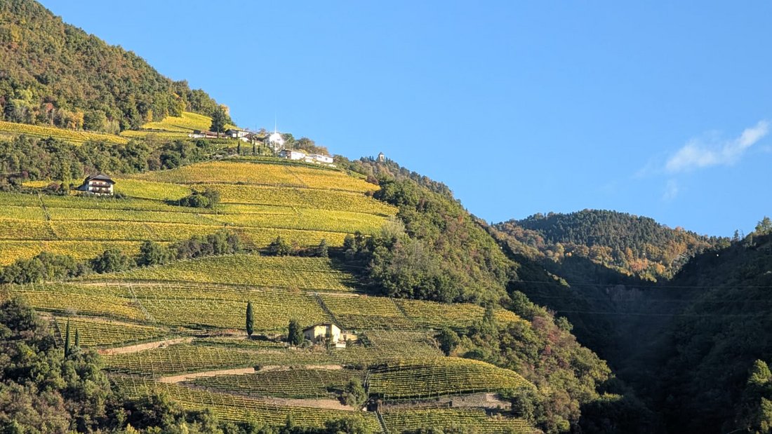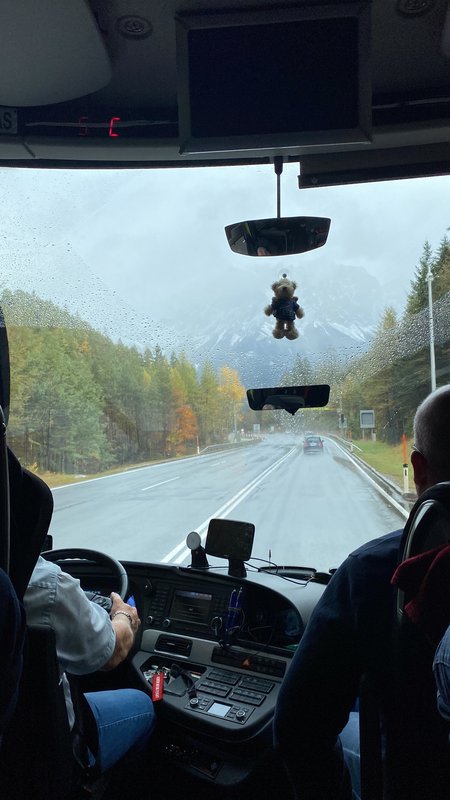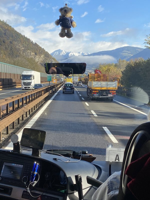 Regelmäßige Pausen sorgten dafür, dass die Busfahrt als nicht zu lange empfunden wurde. Und je weiter man in den Süden kam, desto mehr erfreute die Aussicht aus dem Fenster, wo die Bergwelt der Alpen und der Dolomiten zu bestaunen war. Außerdem wurde es merklich wärmer, und die Sonne schickte ihre Herbststrahlen.