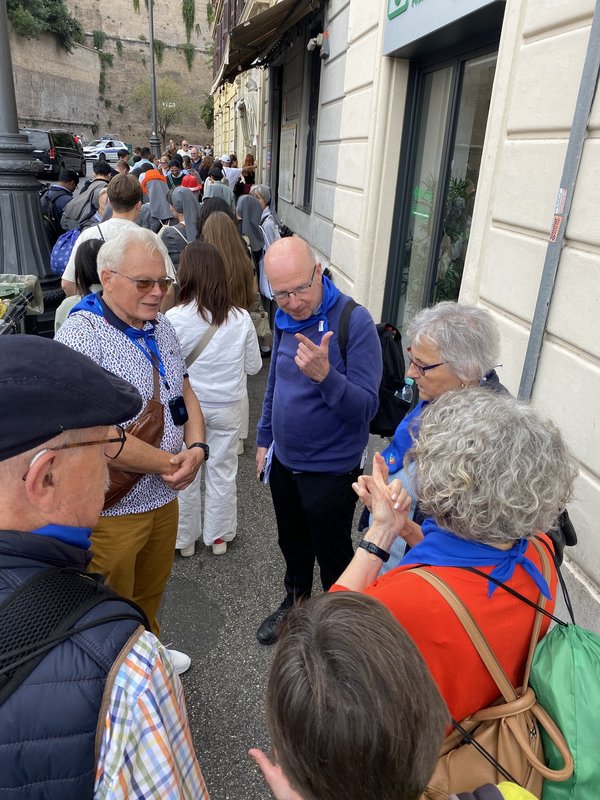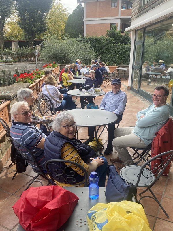 Unterwegs gab es Gedanken zur Bedeutung des Heiligen Jahres und dem Motto "Pilger der Hoffnung" durch Pfarrer Mühl. Pastoralreferent Heinrich Schmith übte mit der Gruppe einige Lieder aus dem Wallfahrtsheft ein, und es gab auch einen kleinen Italienisch-Kurs. Außerdem konnte man alte Bekanntschaften auffrischen oder neue knüpfen.