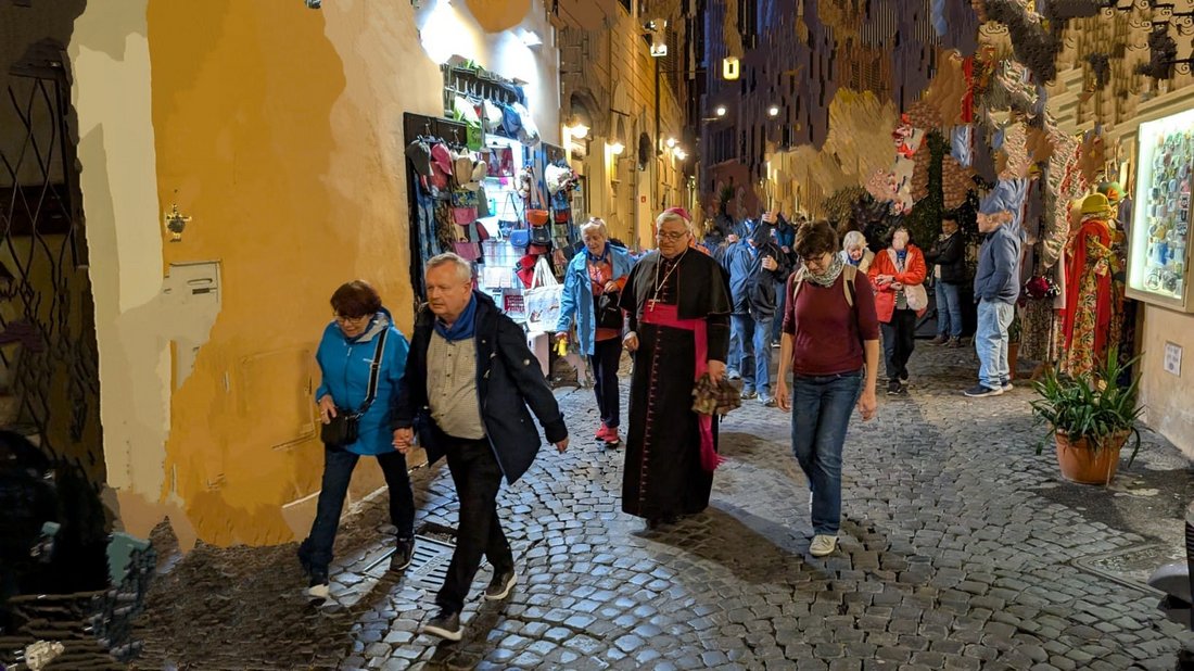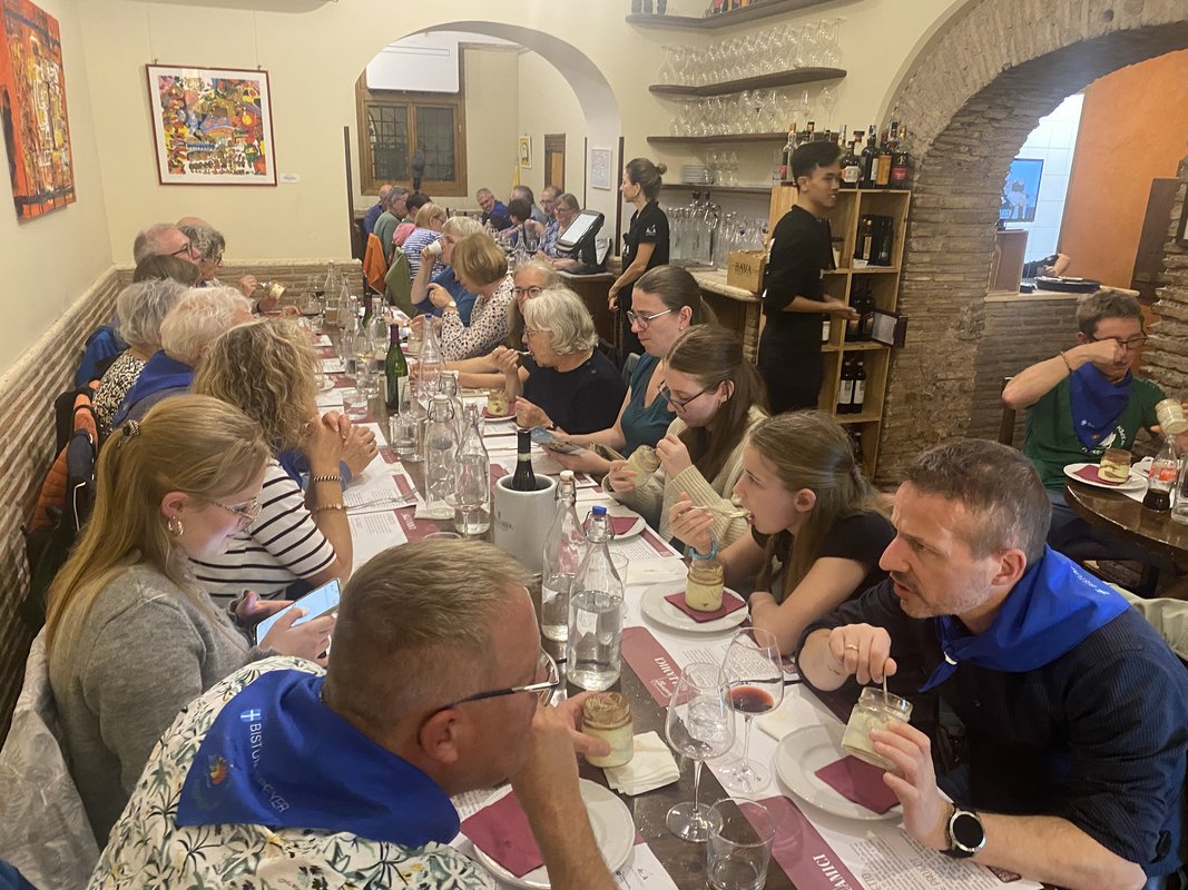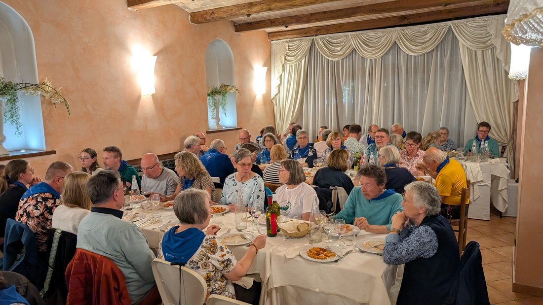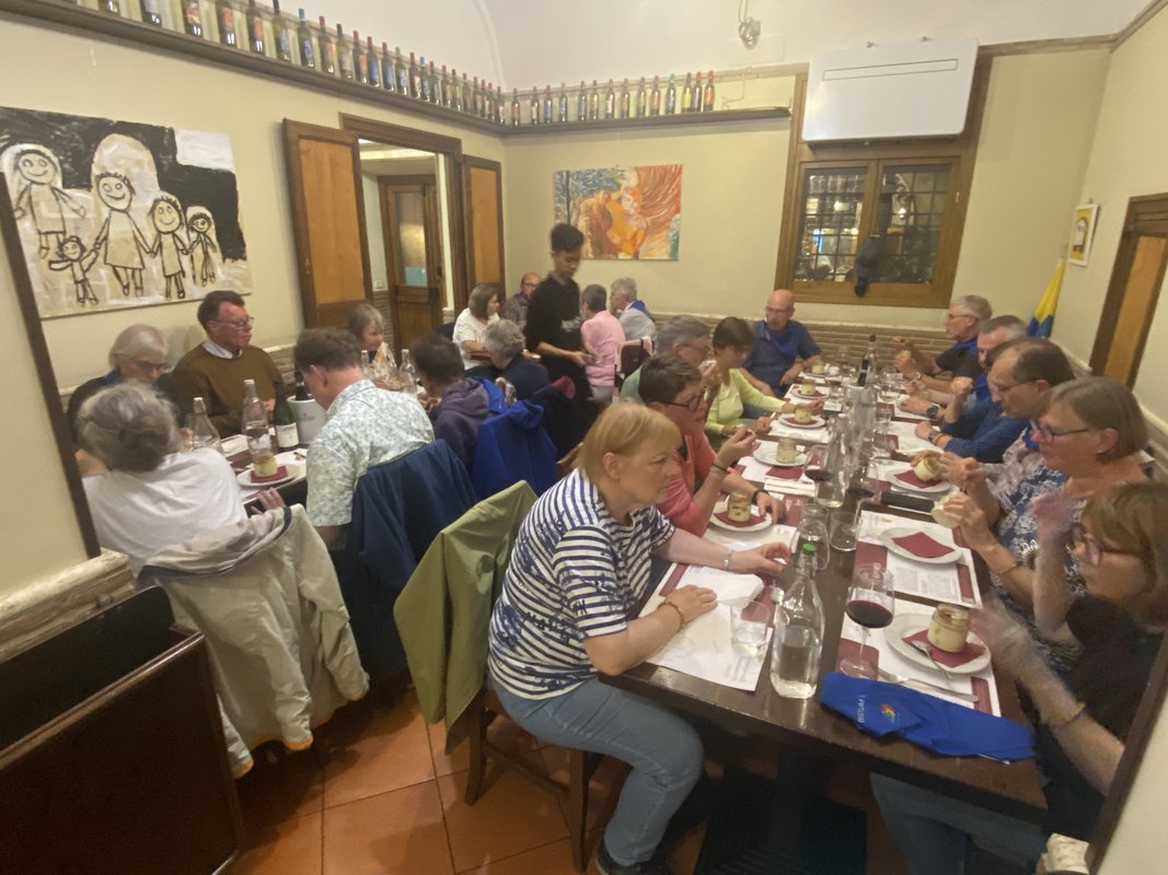 Am Abend versammelten sich alle im malerischen Stadtteil Trastevere zu einem typisch italienischen Abendessen in der "Trattoria degli Amici", die von der Gemeinschaft Sant’ Egidio betrieben wird und in der auch Menschen mit Beeinträchtigung arbeiten. Das sehr gute Essen, der freundliche Service und einige Flaschen guten Weins ließen schnell eine fröhliche Stimmung aufkommen, in der manches Erlebnis der vergangenen Tage nachklingen konnte.