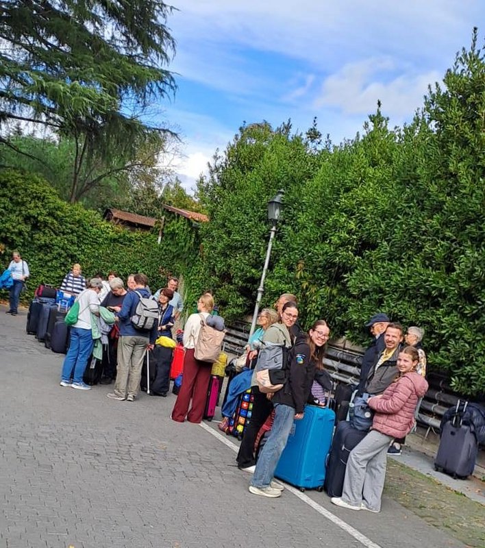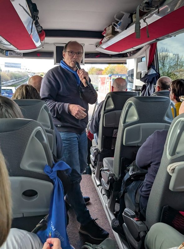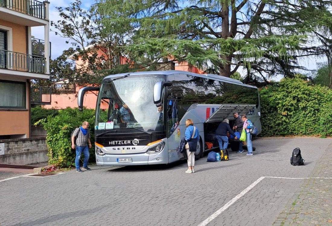 Früh am Morgen waren alle 45 Teilnehmerinnen und Teilnehmer der Rom-Wallfahrt der Pfarrei Hl. Edith Stein Schifferstadt pünktlich am vereinbarten Treffpunkt am Südbahnhof erschienen. Schnell waren die Koffer eingeladen, und los ging das Abenteuer. Busfahrer Matthias und der Leiter der Reise, Pfr. Stefan Mühl, begrüßten alle an Bord. Der Bus fuhr in den beginnenden Tag hinein, zunächst über Heilbronn, Stuttgart, Ulm und das Allgäu zum Grenzübergang nach Österreich, dann weiter über den Fernpass und den Brenner nach Südtirol und ins Trentino.