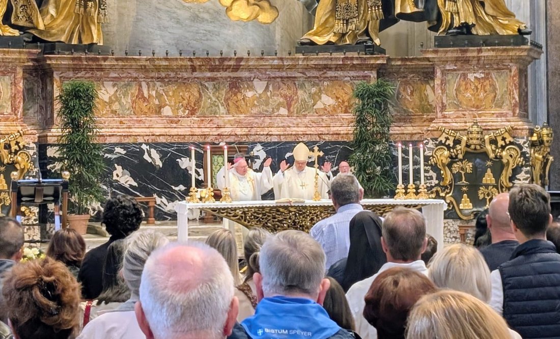 Am Ende des Gottesdienstes dankte der Bischof allen, die diese Tage geplant und gestaltet hatten und nannte besonders den Projektchor unter der Leitung von Diözesankirchenmusikdirektor Martin Erhard sowie die Messdienerinnen und Messdiener, zu denen ja auch drei Jugendliche aus unserer Schifferstadter Gruppe gehörten.