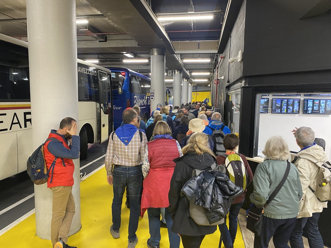 Wegen unvorhersehbarer Schwierigkeiten konnten wir unsere Rückreise nicht wie geplant am Morgen antreten. Die Abfahrt verzögerte sich um einige Stunden. Die dadurch gewonnene Zeit im Hotel nutzten einige, um nach den Strapazen der letzten Tage etwas länger zu schlafen oder auch ausgiebig zu frühstücken ohne lange Schlange an der Kaffeemaschine. Bei allen notwendigen Umplanungen wussten wir uns durch die Busunternehmen Eisinger und Hetzler sowie das Bayerische Pilgerbüro sehr gut unterstützt.