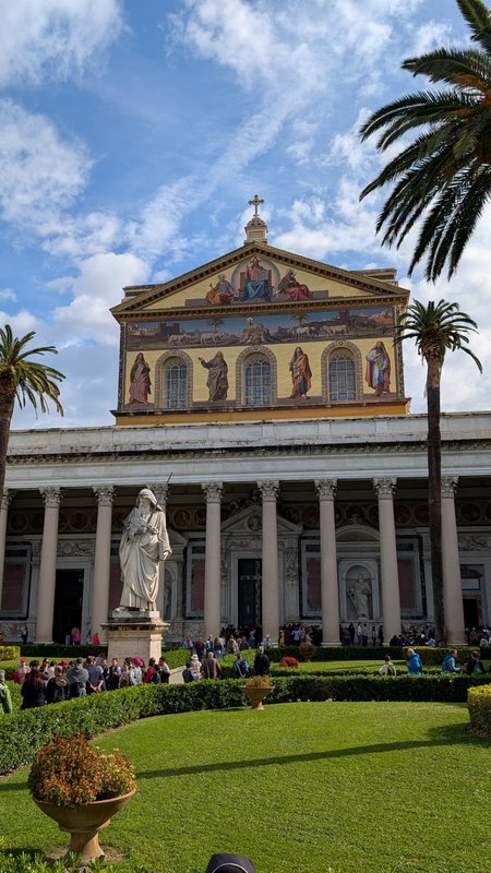 Wieder liegt ein intensiver Tag, der dritte Romtag, hinter uns. Er begann mit einer Busfahrt in die Basilika St. Paul vor den Mauern, in der sich das Grab des Apostels Paulus befindet. Zur Einstimmung auf den Einzug durch die Heilige Pforte zitierte Domkapitular Franz Vogelgesang Papst Johannes Paul II.: "Habt keine Angst! Öffnet, ja reißt weit auf die Tore für Christus!"