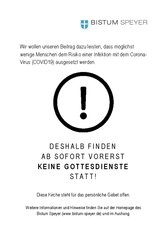 Die Lage der Ausbreitung des Coronavirus spitzt sich immer mehr zu: Der Krisenstab im Bischöflichen Ordinariat hat deshalb in Abstimmung mit dem Herrn Bischof weitreichende Entscheidungen getroffen - auch für unsere Pfarrei in Schifferstadt