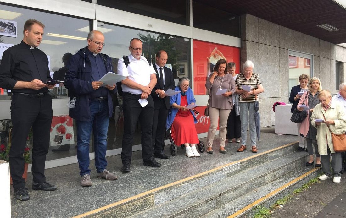 "In den letzten Jahren hat unsere Gedenkfeier immer größere Kreise gezogen, wofür wir sehr dankbar sein müssen", meinte Reverend Dr. Joachim Feldes von der Anglikanischen Gemeinde Rhein-Neckar am Mittwoch, 7. August, zu deren Beginn am Hauptbahnhof um 12.45 Uhr. Die Rede ist vom letzten Lebenszeichen Edith Steins, die sich an diesem Tag mit dem Transportzug auf dem Weg zum Konzentrationslager Auschwitz-Birkenau befand. Sie war eine der 987 Gefangenen des Deportationszuges, der an diesem Tag gegen 13 Uhr am Hauptbahnhof Schifferstadt anhielt. "Wir erinnern uns, welchen Platz sie in dieser Welt eingenommen hat und auf welche Weise sie zur Glaubenszeugin für uns geworden ist", hob Pfarrer Michael Erlenwein hervor.