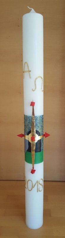 Seit einigen Jahren gestalten verschiedene Gruppierungen der Gemeinden die Osterkerze nach Möglichkeit selbst.