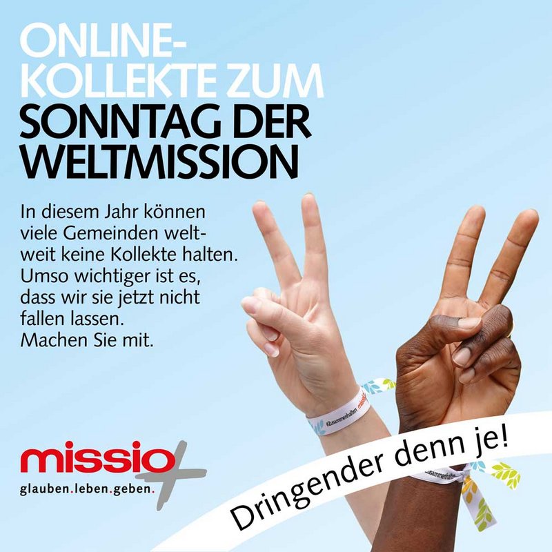 Die Solidaritätskollekte am Weltmissionssonntag ist für die Kirche in den ärmsten Regionen der Welt überlebenswichtig. Ohne sie wäre die diakonische und pastorale Arbeit vielerorts nicht möglich. Aufgrund der Coronapandemie werden viele Gemeinden weltweit keine Kollekte halten können. Der Solidaritätsfonds, der die ärmsten Diözesen im nächsten Jahr unterstützen soll, droht deshalb leer zu bleiben. Die Kollekte am Weltmissionssonntag lebt von der Bereitschaft aller, das zu geben, was sie können, um einen Unterschied zu machen.