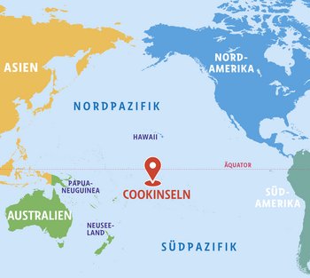 Land: Besteht aus 15 Inseln mit 1,9 Mio. km² Meeresfläche im Südpazifik, Landfläche 236,7 km², benannt nach dem britischen Seefahrer James Cook. Amtssprachen