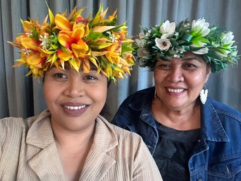 Tarani Napa und Tevairangi Napa sind ein Mutter-Tochter-Künstlerinnenteam von den Cookinseln. Sie fühlen sich geehrt, dass sie dieses Kunstwerk als Anerkennung ihrer Liebe zu ihrer Heimat, ihrem Glauben und ihrem Erbe mit anderen teilen können.